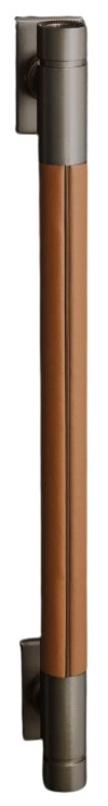 Both collections, brass and titanium, feature striking finishes with hardware wrapped in hand-stitched, sustainably sourced, Greenguard Gold Certified, durable leather.