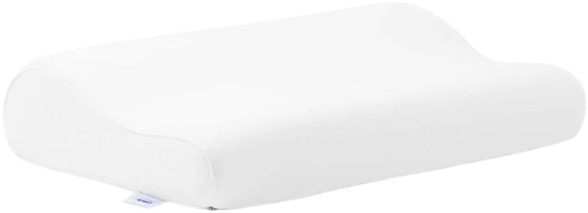 Its contoured, ergonomic design follows the natural curve of your body, properly supporting your head, neck and shoulders when you sleep on your back or side. Because it’s designed for precise alignment, you must choose the proper size based on your shoulder dimensions and sleeping position.